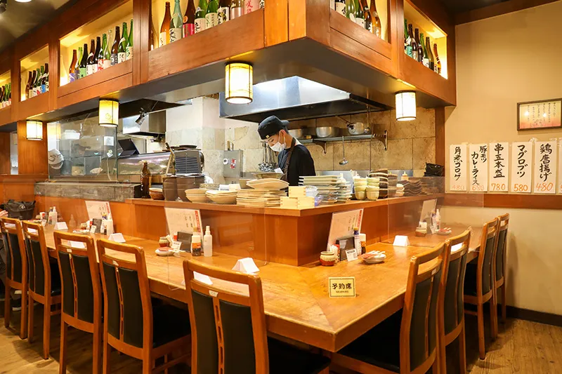 ライブ感あふれるカウンター席で、一杯いかがでしょうか?